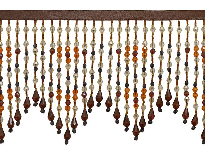 " Fancy Beaded Fringe (Brown/Orange/Clear)